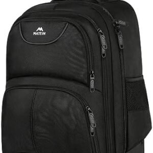 MATEIN Rolling Backpack, 17 inch Water Resistant Wheeled Laptop Backpack, Carry on Luggage Business Bag, Overnight College Computer Backpack Trolley Suitcase for Men Women Adults to Travel, Black