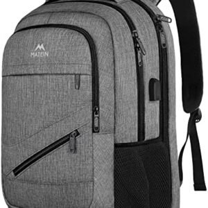 MATEIN Travel Laptop Backpack, 17 inch Business Flight Approved Carry on Backpack, TSA Large Travel Backpack for Men Women with USB Charger Port & Luggage Sleeve, Sturdy College Rucksack Bag, Grey