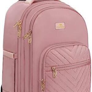 MATEIN Rolling Backpack for Women, 17 Inch Travel Laptop Backpacks with Wheels, Large Carry On Business Luggage Roller Backpack, Waterproof Trolley Suitcase Overnight College Work Computer Bag, Pink