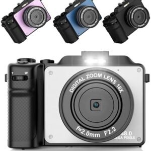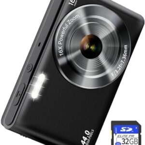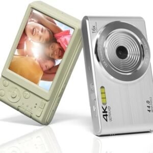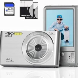 Digital Camera FHD 4K 44MP with 64GB SD Card 16X Digital Zoom 2024 Digital Cameras FHD 1080P Cheap Compact Portable Small Vintage Camera Children’s Day Gifts for Teens Boys Girls (Cream&Silver)