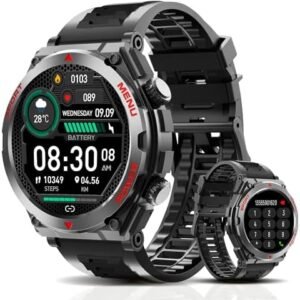 Military Smart Watch for Men with Call (Answer/Make) Outdoor Tactical Sports Watch Rugged 1.85″ HD Big Screen Fitness Tracker Heart Rate Sleep Monitor Smartwatch Compatible with Android iPhone Samsung