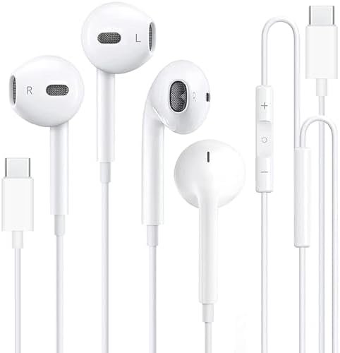 2 Pack USB C Headphones Wired for iPhone 15,Type C in-Ear Earphones with Microphone & Remote Noise Cancelling Earbuds for iPhone 15 Pro Max, iPad, Most USB C Jack Devices