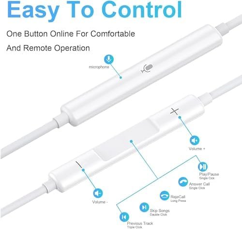 šŸŽµć€Stronger Wire & Remote Control怑: The usb c in ear wired headphones cord is strengthened for longer durability. Support Volume+/-, Last/Next Track, Pause, Answer/End/Reject Call to free your hands when listening to music, having phone calls while driving, walking, exercising, working, shopping, etc.