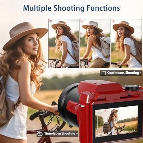 64MP Digital Camera for Photography, 4K Vlogging Camera for YouTube with 3β Flip Screen,16X Digital Zoom, WiFi& Autofocus,2 Batteries, 32GB TF Card