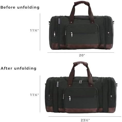 【Expandable Design】Measuring (L) 20 x (W) 9 x (H)11½ inches, both side zippered compartments can be zipped open, extending to 23½ inches in length, this travel duffel bag is spacious enough to house all your essentials without compromising on style. Designed to cater to all your travel needs, this versatile bag is perfect for overnight stays, weekend getaways, gym sessions, and even airline-approved carry-on luggage.