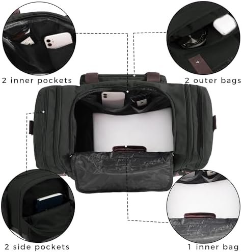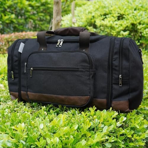 【Practicality】It holds all your overnight stuff for travel and fits overhead compartment (for planes & trains). And with the removable shoulder strap, you can carry this weekender bag in 3 ways(carry-on bag, shoulder bag or crossbody bag). This bag can go travel, camping, vacation, business trip, gym or anywhere with you. You will be fond of it once owned! Don’t take another trip without one of these canvas duffel bags to accompany you on your journey.