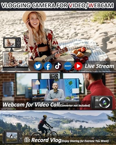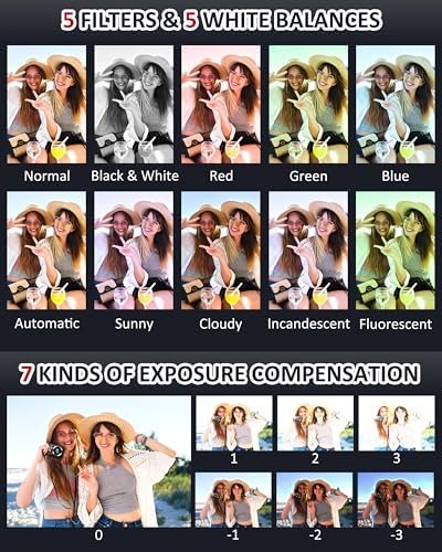 📸【Multifunctional Camera Unleashing Creativity】This feature-rich small camera doubles as a webcam for live streaming and video blogging. The built-in flash ensures clear photos even in low-light conditions, while the integrated microphone enhances the vibrancy of your vlogs. Explore features like time-lapse, slow motion, burst mode, selfie mode, webcam functionality, smile recognition, and various creative filter effects to create engaging and fun photos.