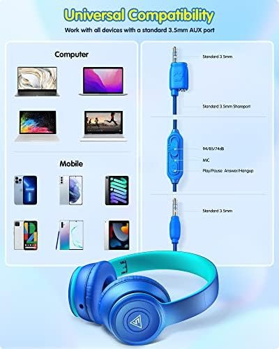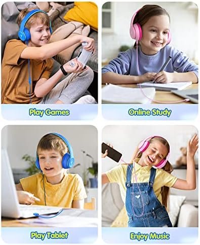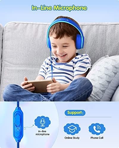 【In-line Microphone & Great Compatibility】The in-line microphone brings a clear calling experience, which is suitable for online study, voice and video calls, perfect for learning, entertainment, and travel. The Kids Headphones Wired support devices with a 3.5mm audio jack, such as iPad, Chromebook, Switch, Smartphone, Computer, Kindle, MP3/4, Fire Tablet, Study Tablet, Laptop, PC etc.