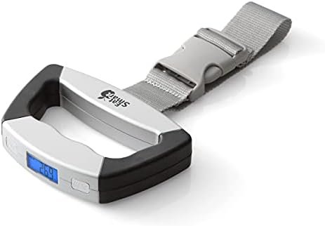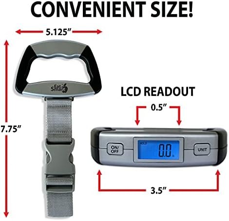 The Eat Smart Precision Voyager Luggage Scale is a portable and lightweight yet heavy-duty travel accessory designed with all travelers in mind. Reduce the stress of surprise overweight luggage fees at the airport by weighing before you go! Clip the strap onto the handle of your luggage and lift with either one or two hands. When ready, the scale will beep and display the weight of your luggage on a bright, backlit display. To reset, press the ON/OFF button again. Weigh precisely in 0.1 lb / 0.1 kg graduations up to 110 lb / 50 kg and easily lift with either one or two hands with the generously sized handle. Because the Eat Smart Voyager scale is so lightweight, it is easily packed into luggage during the trip, so there are no luggage fees on the return trip. Includes a long-lasting lithium battery.