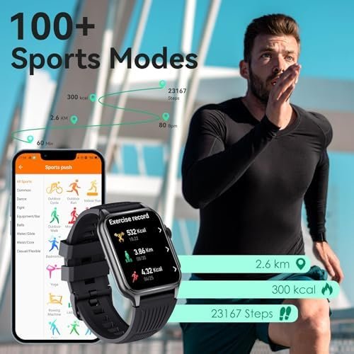 ⌚ 【100+ SPORTS MOEDS, YOUR SPORT ASSISTANT】- EIGIIS military smart watches for men serves as a faithful sports partner, supporting 100+ sports modes and recording real-time data (calories/steps/distance, etc.) as you exercise. You can check your exercise data on FitCloudPro APP to help you reach your daily exercise goal.