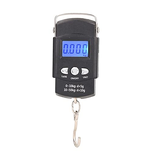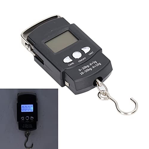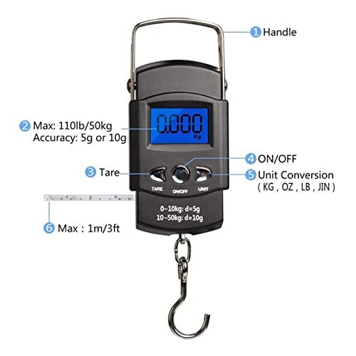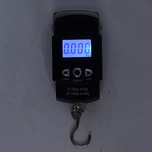 SMALL AND PORTABLE: Handheld electronic scale come with small size, light weight, easy to carry with you to anywhere at anytimeCLEAR DIGITAL LCD DISPLAY: Electronic hook scale adopt digital LCD display, bring clear reading and convenient measurement50KG MAXIMUM RANGE: Luggage scale saves you from accidental excess baggage fees, the maximum range is 50kg. The measurement units contain kg, oz, Lb, jinCOMFORTABLE TO HOLD: Ergonomic design provides a comfortable grip when weighing, not easy to feel fatigue, labor and time savingSCOPE OF USE: Portable electronic scale is ideal for luggage weighing, shopping, fishing and other home use, provide great convenience