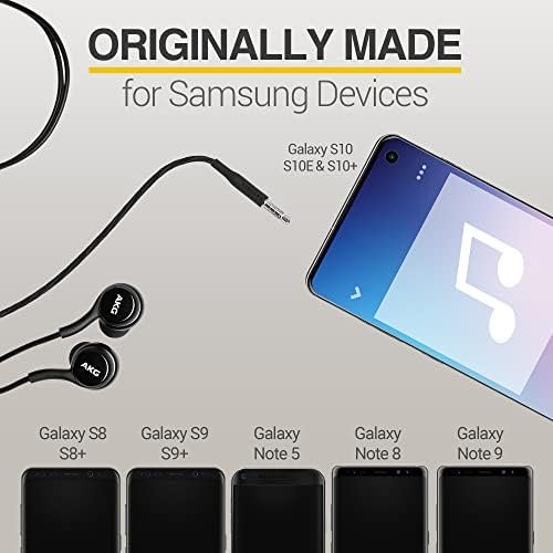 OEM ElloGear Earbuds Stereo Headphones for Samsung Galaxy S10 S10e Plus Cable – Designed by AKG – with Microphone and Volume Buttons (Black)