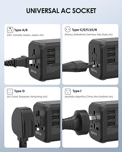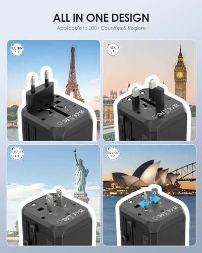 WORLDWIDE ADAPTER & TRAVEL ESSENTIALS – Our all-in-one adapter is equipped with 4 different plug types that could plug into the sockets of 200+ countries and regions: Type C (most popular type) for use in most of Europe, including France, Germany, Italy, Spain, Iceland, Greece, and many other countries; Type G for UK, Ireland, HK, Malaysia, Singapore; Type I for China, Australia, New Zealand, Argentina; Type A for USA, Mexico, Canada, and Japan. It does NOT work with Type D (India) or Type M (South Africa) sockets.