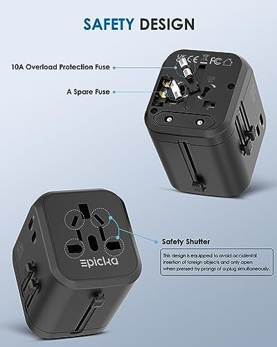 PORTABLE AND SAFE – This compact international power adapter is ideal for travelers, overseas business, work, and students, epecially if you need to fast charging your tablet or laptop. It does not have surge protection and can be conveniently used on a cruise ship as well. Built-in 10A fuse, safety shutters, separate plug lock system, RoHS, CE, FCC certifications, and our 2-year limited warranty provide extra peace of mind.