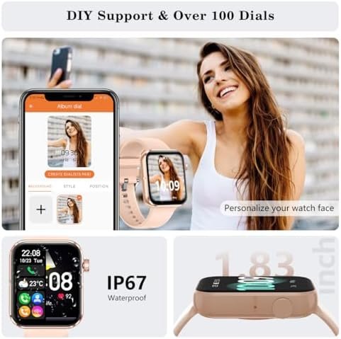 📲Durability & Practical Features – Experience the next level of digital interaction with the 1.83″ TFT screen, offering crystal-clear visuals, vibrant colors, and seamless navigation. Offers over 180 online smartwatches faces in various styles, along with options for DIY custom dials. Personalize your watch by setting your favorite photos as the watch face. Explore a variety of handy features such as business card, music players, stopwatches, calculators, and many more.