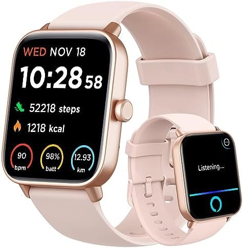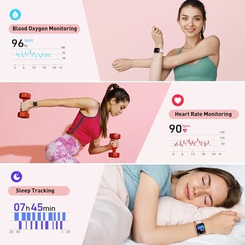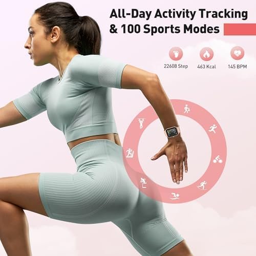 【100 Sports & IP68 Waterproof】Choose from over 100 sports modes on the fitness watches for women, tailoring your fitness tracking to your specific sports needs, whether it’s walking, running, football, basketball, ect..The digital watch womens meticulously records steps, exercise duration, distance, and calories burned. With an IP68 waterproof rating, the android smart watch allowing you to wear it while washing hands or in the rain, making it easy to integrate into your daily routine.