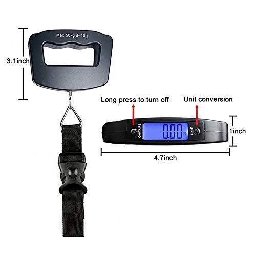110Lb capacity digital luggage scale precisely weighs suitcases, bags and backpacks with accuracy within 0.1 pound. This simple, easy-to-use scale has a sturdy strap for an extremely accurate measurement of different types of bags. Weight results stay on the screen after stabilization so you can record results. Portable design makes it easy to store at home or take along in your suitcase.