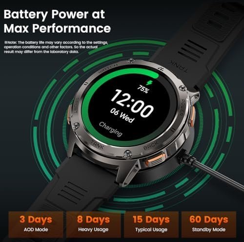 ➤【60+ Days Long Battery Life】T3 smart watches for men has up to 480mAh 100% pure cobalt battery (military grade), which is twice the performance and lifespan of traditional smartwatches. In addition,the latest ultra power-saving AI algorithm is super power-saving, enough for up to 2 weeks of normal use and can continue to use sports mode, health index measurement and other functions for up to 60+ days.