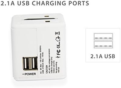 ULTRA COMPACT & LIGHTWEIGHT FOR OPTIMAL USE: This International power adapter is small in size and is a great travel companion. Input Voltage: AC100~250V, Output Voltage: AC100~250V. USB Output: DC 5V/2.1A Max. NOTE: This is not a voltage converter. This power Plug adapter does not convert voltage.