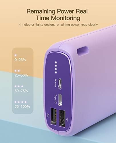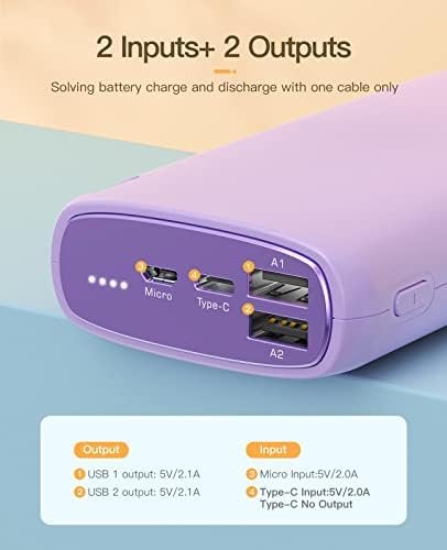 【Dual USB Output Ports & Fast Recharge 】Each portable phone charger has 2 USB output ports(5V 2.1A), which make it possible to charge 2 USB charged devices at the same time. And it has a USB C input port(recharging only) and a Micro USB ports, you can fully refill the battery bank in 7 hrs with 2.1A charger. 4 LED indicator shows the remaining battery level of the battery bank at a glance.