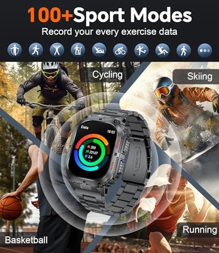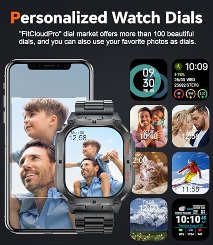 100+ Sport Modes:The mens smart watch includes 100+ exercise modes including running, cycling, basketball, skating, baseball, yoga, tennis, and more….Daily Exercise Data Monitor:This fitness tracker watch automatically track count your full-day steps, calories burned, distances, miles walked and duration to get a clear situation of your daily exercise. You can check the data on the smart watch or “FitclouldPro” app, which can help you track and optimize training effects and arrange fitness plans.