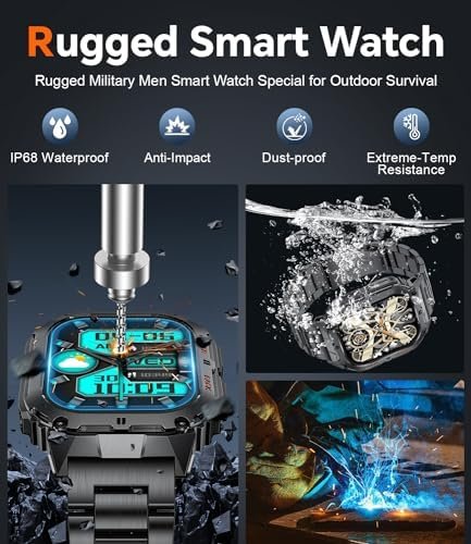 Long Battery Time:400mAH.One charge can last 3-5 days, bringing you an efficient and convenient smart lifestyleShock-resistant Construction: Military smart watches typically employ internal shock-resistant technology to effectively minimize the impact of external vibrations on the internal components of the watch, preventing any dislodgement or damage to the parts.
