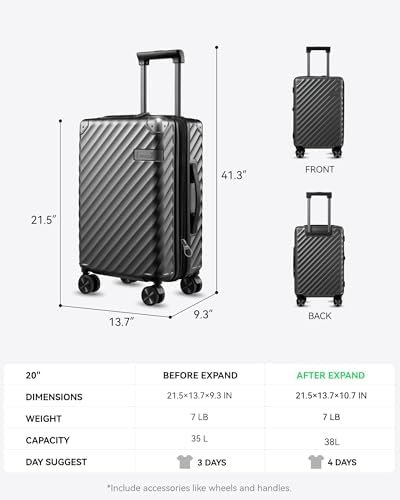 Burst-Free Zippers: Our expandable luggage features a double-layer zipper design, that meets YKK standards for increased durability. Carry everything you need with confidence when travelling.