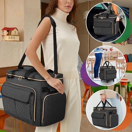 EASY TO CARRY: Attached with sturdy top handles, a detachable dolly and a detachable shoulder strap. There are also 2 side padded handles for lifting the bag easily.