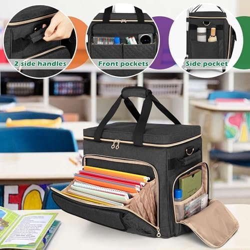 Recommend to any teacher that’s constantly bringing teaching items in and out of the classroom. Also good for keeping art and scrapbook supplies.