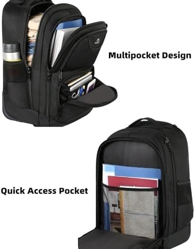 COMPARTMENT: This backpack with wheels built-in separate laptop pocket can hold laptops up to 17 inch as well as 15.6 inch, 14 inch and 13 inch Macbook. This large rolling backpack has 36L Large Main Compartment roomy hold clothing for trip; Second zippered file compartment to organize files; Organizer Compartment with many pockets make your items organized and easier to find; Mesh water bottle pockets at sides; A magic tape pocket at the back is convenient to carry a small towel