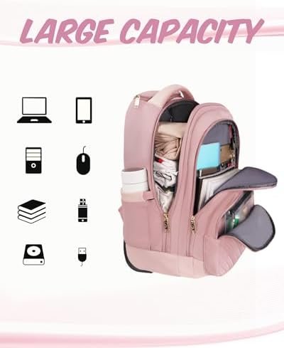Comfortable and TSA-Friendly Design: This roller backpack for women adopt TSA-Friendly design, it can be unfolded 180 degrees and get through airport security quickly. Padded mesh back straps provide you comfort back support. Wet/Dry separation pocket can store tooth brush or other damp items separately. Smooth wheels can remain silent when this backpack rolls on the road. The telescoping handle can be adjusted up to two sections high, you can move this backpack smoothly without bending down.