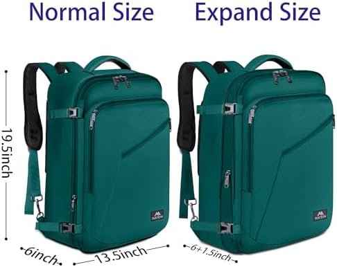 EXPANDABLE & LARGE CAPACITY: This extra large travel backpack with expandable feature offers you more packing capacity. Unzipping to get 45L storage then can easily hold packing cubes, make-up bag, outfits, camera bag and gear, etc. It fits overhead and under seat while on state of standard carry on size, is ideal for men, women, weekend traveler, or occasional vacationer. This versatile luggage backpack also meets airline carry-on requirements