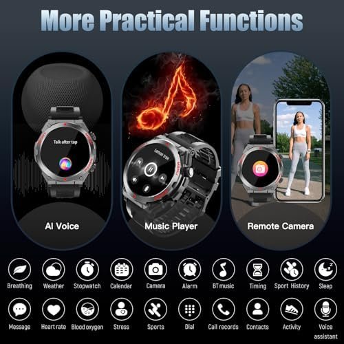 Built-in Functions for Convenience: The Military Smart Watch comes equipped with a range of built-in functions, including weather forecasts, music control, camera control, calendar, calculator, alarm clock, and phone search. Enjoy the convenience of having all these features on your wrist.