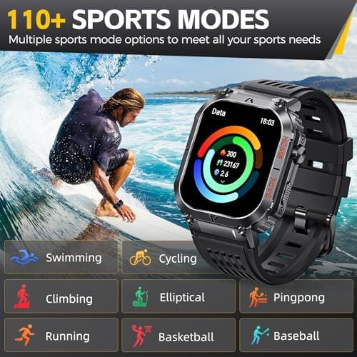 【Comprehensive Fitness Tracker】- LaNikar men’s fitness smart watch has more than 110 sports modes: walking, running, cycling, basketball, football, yoga, table tennis, tennis, etc. You can select and replace exercise modes according to your preference in FitCloudPro. with this tactical smart watch for men, you can easily monitor your exercise status, including steps, calories, and distance data, and he will become your personal smart fitness coach!