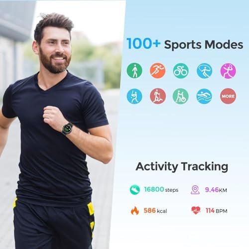[AMOLED Display & Long Battery Life] The men’s smart watch with 1.43-inch HD AMOLED touch screen that brings you a clearer visual and smoother operation experience, and 6 levels of brightness options allow you to easily read information in the sun or dark, and this smartwatch has a built-in large capacity battery, which can be used for up to 15 days and has a long standby time of about 35 days, can be fully charged in 2 hours.