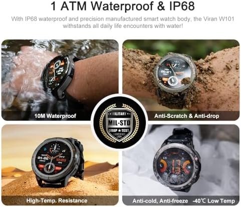 [Easily Face Harsh Environment] This rugged military-grade smartwatch is made of titanium unibody and silicone rubber, successfully passed 12 military tests Including salt spray, rain, impact, crushing, hot steam washout and more, making this outdoor men’s watch suitable for use under high temperature and pressure.