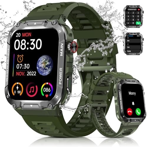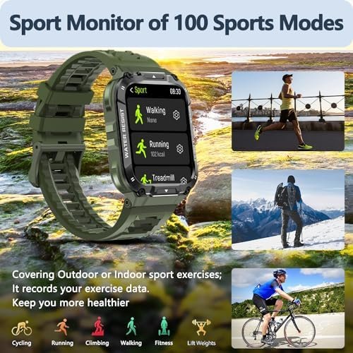 ⌚Military Using: This smartwatch is a multifunctional smart watch that is also a military smart watch. This smartwatch can be used not only for daily use, but also for outdoor extreme sports.It has IP68 waterproof, dustproof, anti-impact etc., which will help you do a better job for outdoor sport. Made of special aluminium alloy material, this smartwatch can withstand harsh environmental conditions, making it the perfect companion for outdoor adventures.
