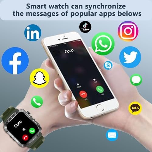 ⌚Make and Answer Call: This smart watch allows you to make and answer calls, receive information on your watch by connecting to your phone’s Bluetooth. This electronic smart watch can be connected to many kinds of popular application for entertainment, such as Facebook, WhatsApp, Twitter, Instagram, Skype, Snapchat, Line, KakaoTalk, Linkedin. The multifunctional smartwatch has a AI voice , which can effectively solve the inconvenience of checking your phone. It allows you to stay in touch with friends, family, and colleagues at all times.