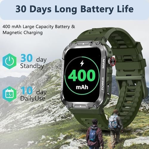 ⌚Long Battery Life: This smart sports watch comes with a 400mAh battery that lasts up to 10 days in normal conditions and 20~30 days in standby. This smartwatch provides long-lasting power for long outdoor adventures, sports or busy working hours, study time. With a normal full charge, you can spend more time using your smartwatch and less time worrying about charging.