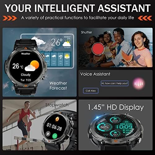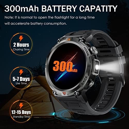 【YOUR ADVENTURE COMPANION WITH FLASHLIGHT】- EIGIIS military smart watches for men has military-grade standard certification, including -40°C cold resistance, 240-hour moisture resistance, freezing rain resistance, 70°C heat resistance, 96-hour salt spray resistance, impact resistance, etc. In addition, the EIGIIS rugged smart watch is equipped with a small flashlight on the side, adding practical function for your outdoor adventure and helping you light the road in the wilderness.