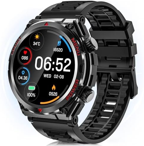 Military Smart Watch for Men Women, 1.52″ HD Bluetooth Fitness Tracker for iPhone Android iOS , IP68 Waterproof Fitness Watch with Answer, Make Call, Heart Rate, Sleep Monitor, 100+ Sport Modes -Black