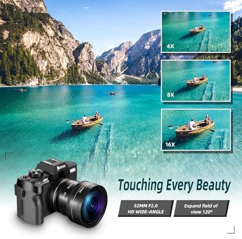 📷【Digital Camera with Mutiple Lens 】The 4K camera is equipped with a professional detachable 52mm wide-angle lens and macro lens, which is very suitable for close-up shooting of large scenes and small objects. The wide-angle lens can expand the angle of view to 120 degrees to provide a wider range of views. With the macro lens, you can take close-up photos with clear details such as flowers.