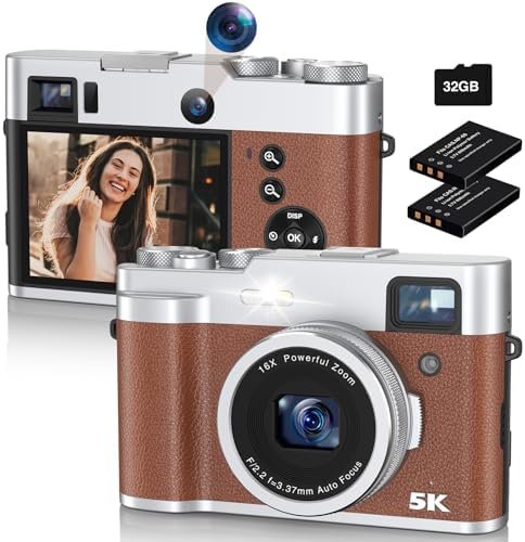 Newest 5K Digital Camera for Photography 48MP Selfie Camera with Front and Rear Dual Lens 16X Digital Zoom Compact Point and Shoot Cameras with Viewfinder, Vlogging Camera with 32G Card & 2 Batteries