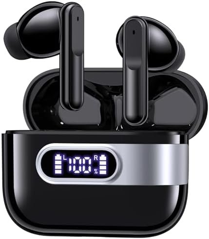 2.Dual LED Power Display. The Bluetooth earbuds has a dual digital battery display case. The Left and right LED light bar display the charging status of the Bluetooth earphones, and the digital number shows the battery level of the charging case.This feature allows you to keep track of the charging case and charge it in a timely manner.