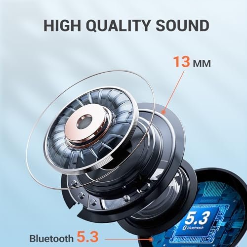 1.HiFi Stereo Sound. The in-ear wireless earbuds with13mm large speakers,ensures a pristine audio experience with depth and resonance.The Bluetooth headphones earbuds maintain crisp and balanced sound,complete with deep bass for an immersive surround sound that maximizes the overall soundstage.
