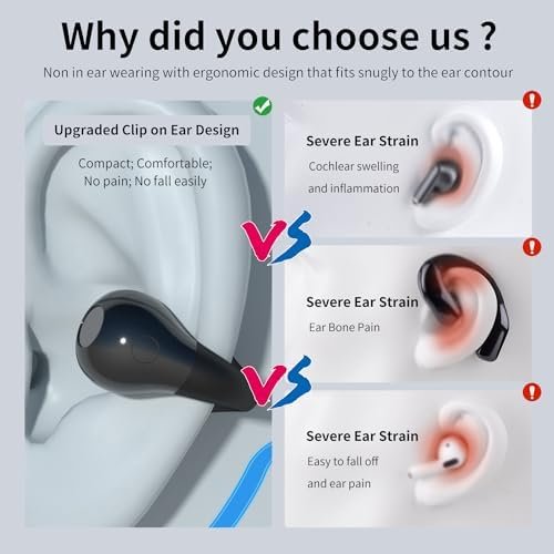 【Clip-Ear Bone Conduction Headphones】Newly developed clip-on ear design with new and stylish appearance and open-ear to make sure you can sense the sound of the external environment when you enjoy your music, film, sport. And you Improve personal safety and be able to respond politely to others.