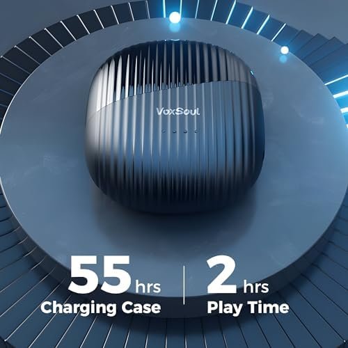 【Up to 55 Hours Playtime】VoxSoul bluetooth earbuds large capacity battery case.The slim charging case is convenient to carry with you, and the headphones have a total battery life of up to 55 hours, ensuring uninterrupted listening for extended periods.Charge for 2 hours to fully charge.Meet your daily usage needs.They are definitely a quality of life upgrade in your day to day life.