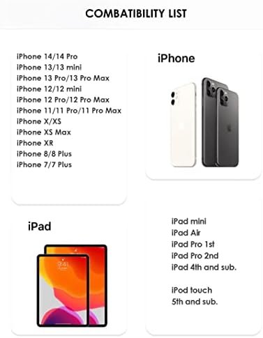 Compatibility List – iPhone 14, iPhone 14 Pro, iPhone 13, iPhone 13 Mini, iPhone 13 Pro, iPhone 13 Pro Max,iPhone 12, iPhone 12 Mini, iPhone 12 Pro, iPhone 12 Pro Max, iPhone 11, iPhone 11 Pro, iPhone 11 Pro Max, iPhone X, iPhone XS, iPhone XS Max, iPhone XR, iPhone 8, iPhone 8 Plus, iPhone 7, iPhone 7 Plus, iPad or iPod touch with lightning port