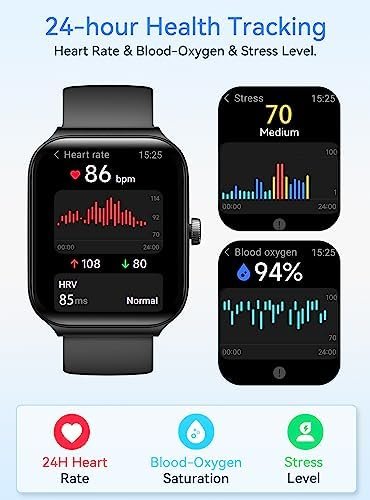 ⛹【Fitness Tracking & 12 Months Warranty】With over 99+ built-in sports modes, the fitness watch makes it easier for you to achieve your fitness goals. Whether it’s fitness, running, swimming, cycling, fast walking, yoga, or more, the activity tracker watch will record your fitness data, ensuring that your fitness is more meaningful. If you have any problems after receiving your smartwatch, please let us know. We are always ready to provide the best solution for you.