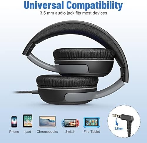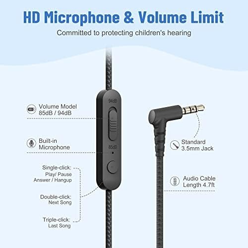 [ Stereo Sound & Share Port ] : Built-in 40mm audio driver to ensure rich bass and crisp midrange which provides excellent sound performance, this wired headphones is perfect for playing the phone/computer games and listening music. also the share port function let kids can insert another headphone plug into the sharing jack to share audio with friends or families, no splitters or special cables needed.